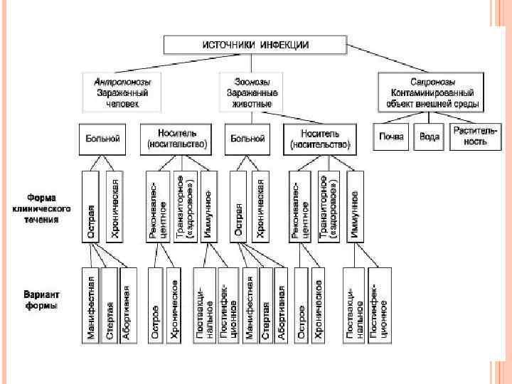 4) исход Могут быть разные варианты: а) летальный исход; б) выздоровление (клиническое и микробиологическое). Клиническое выздоровление: симптомы заболевания угасли, но возбудитель еще находится в организме. Этот вариант опасен формированием носительства и рецидивом заболевания. Микробиологическое – полное выздоровление; в) хроническое носительство.