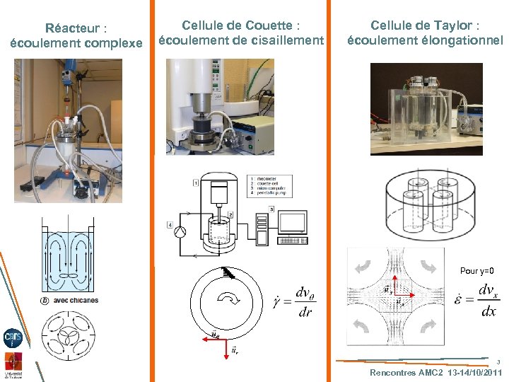 Réacteur : écoulement complexe Cellule de Couette : écoulement de cisaillement Cellule de Taylor : écoulement élongationnel Pour y=0 3 Rencontres AMC 2 13 -14/10/2011