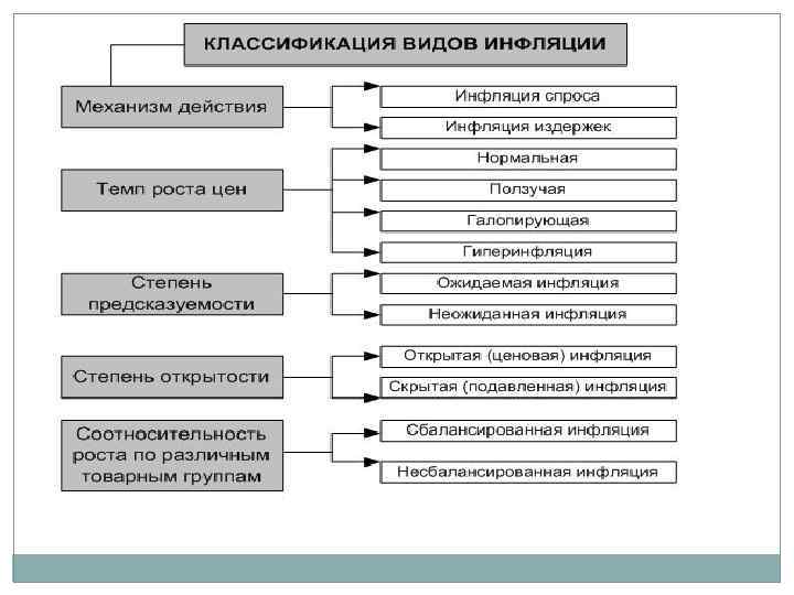 Виды инфляции по механизму действия: При инфляции спроса повышение цен объясняется избыточным спросом Инфляция предложения (издержек) объясняется увеличением издержек на единицу продукции