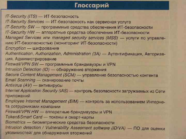 Утечка конфиденциальной информации Основные каналы утечки информации с одного рабочего места: l CDR l COM- и USB- порты l Инфракрасные порты l Bluetooth l Встроенный модем l Сетевая карта l Монитор l Принтер l Сканер, копир l Интернет-педжер l E-mail l Web - трафик