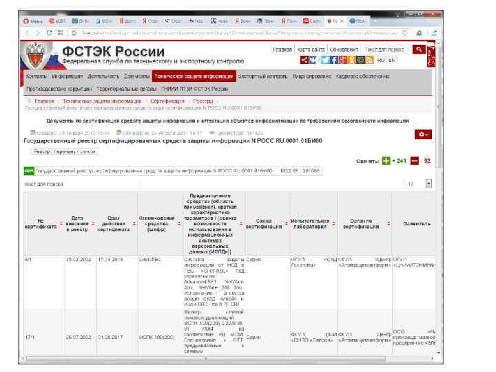 Федеральная служба по техническому и экспортному контролю • обеспечения защиты (некриптографическими методами) информации, содержащей сведения, составляющие государственную тайну, иной информации с ограниченным доступом, предотвращения её утечки по техническим каналам, несанкционированного доступа к ней, специальных воздействий на информацию (носители информации) в целях её добывания, уничтожения, искажения и блокирования доступа к ней на территории Российской Федерации; • защиты информации при разработке, производстве, эксплуатации и утилизации неинформационных излучающих комплексов, систем и устройств; • осуществления экспортного контроля.