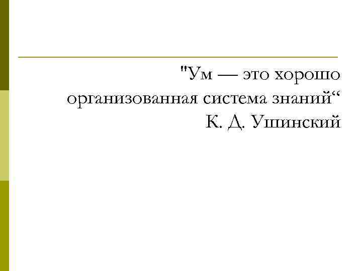 "Ум — это хорошо организованная система знаний“ К. Д. Ушинский