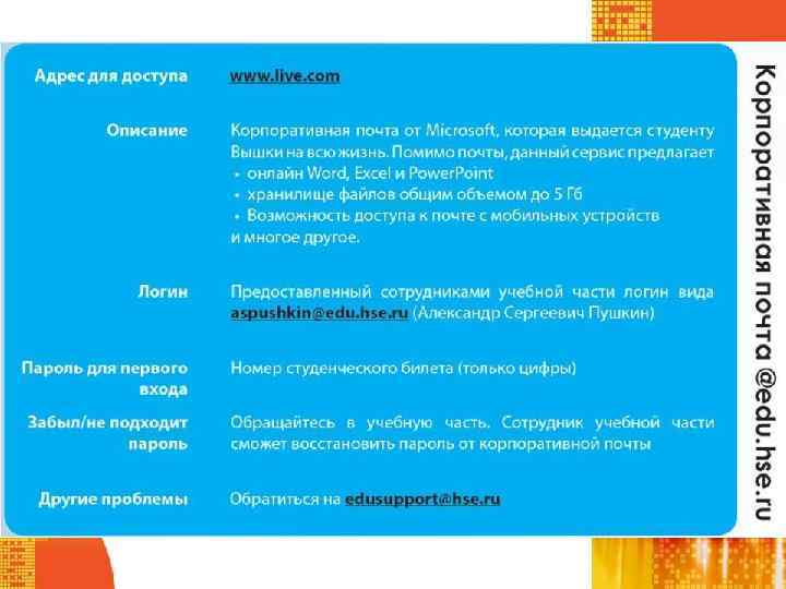 Корпоративная электронная почта Это официальный канал общения со службами Вышки Вы обязаны читать эту почту Вы можете настроить переадресацию