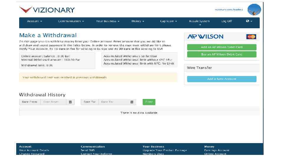 Vizionary Marketing пакет еженедельный майнинговыйi Времья добычи Pool г м н ни ай Товары и услуги Capricoin CPC Внешняя торговля Bittrex Bleutrade Кошелек в мобильном приложение 2016 Q 1 Внутреняя торговля Capricoin 2016 Q 1 Cash Back