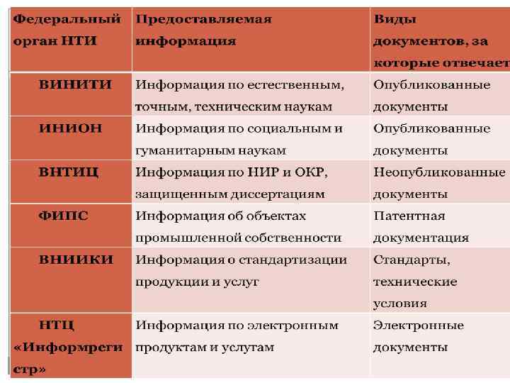 ГОСУДАРСТВЕННАЯ СИСТЕМА НАУЧНОТЕХНИЧЕСКОЙ ИНФОРМАЦИИ (ГСНТИ) http: //www. gsnti. ru/ формирование и использование государственных ресурсов НТИ, их интеграция в мировое информационное пространство и содействие созданию рынка информационных продуктов и услуг.