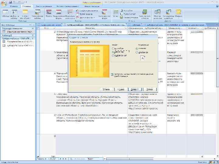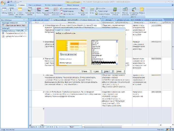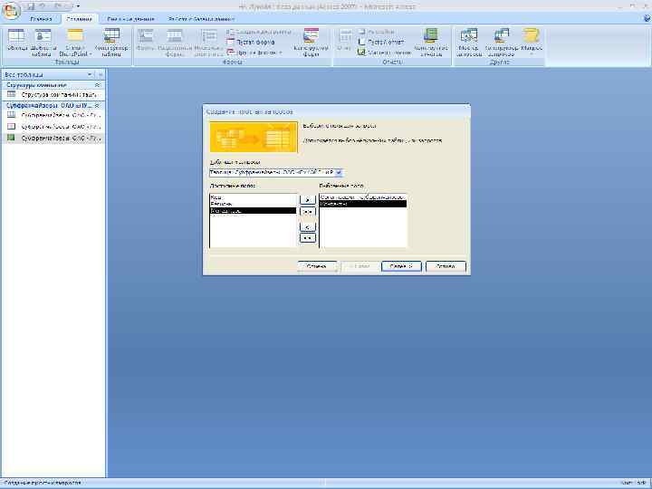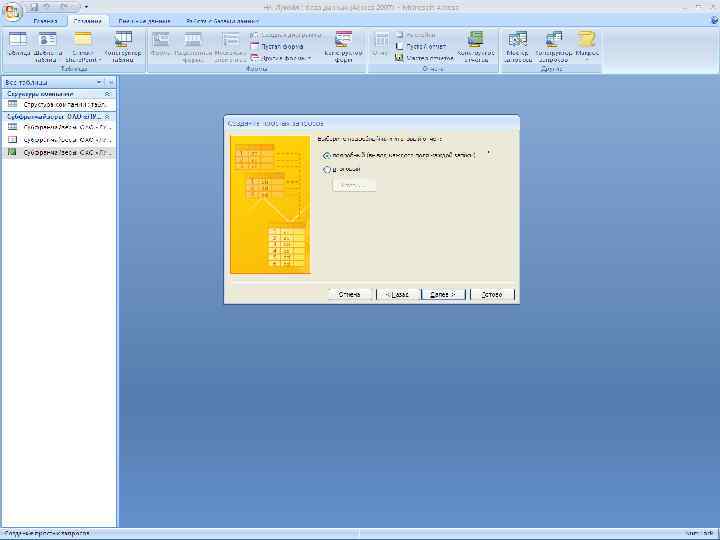 Создание отчетов Команда «Мастер отчётов» , расположенный на ленте «Создать»