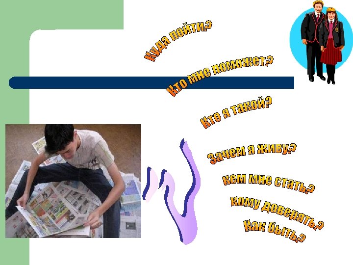 9. Информационно – рекламный сюжет: «Профессии – модные, современные, востребованные, перспективные» (видеоролик) «Найти свою дорогу, узнать свое место – в этом все для человека, это для него значит сделаться самим собой» В. Г. Белинский 10. Памятка: «Ищешь свое место на рынке труда? Дерзай с умом!» «Тип реализуемой профессиональной деятельности должен совпадать с ценностными ориентациями личности» Н. С. Пряжников l