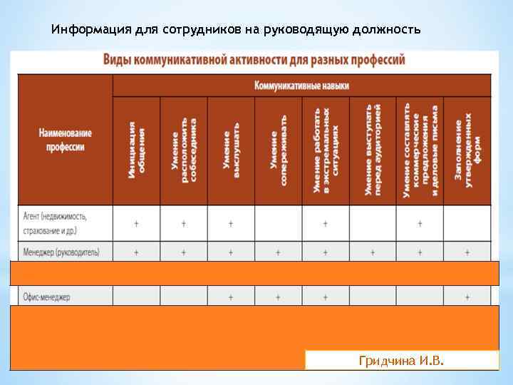 Информация для сотрудников на руководящую должность Гридчина И. В.