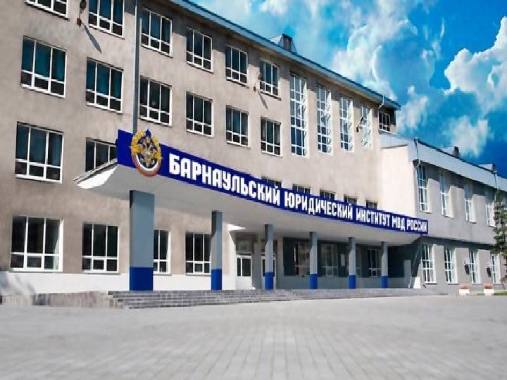 Барнаульский Юридический институт МВД России Адрес Квалификация Специальность Результаты ЕГЭ Примечание г. Барнаул, ул. Чкалова, 49 Юрист/ следователь, дознаватель Правовое обеспечение Русский язык национальной безопасности обществознание Min балл – 36 Юрист/ Участковый уполномоченны й полиции Правоохранительная деятельность Дополнительное вступительное испытание по истории (тестирование) русскому языку (изложение) ФИЗО срок обучения -5 лет Min балл - 42 тел. (385 -2) 37 -91 -40 (Дежурная часть) e-mail: info@buimvd. ru