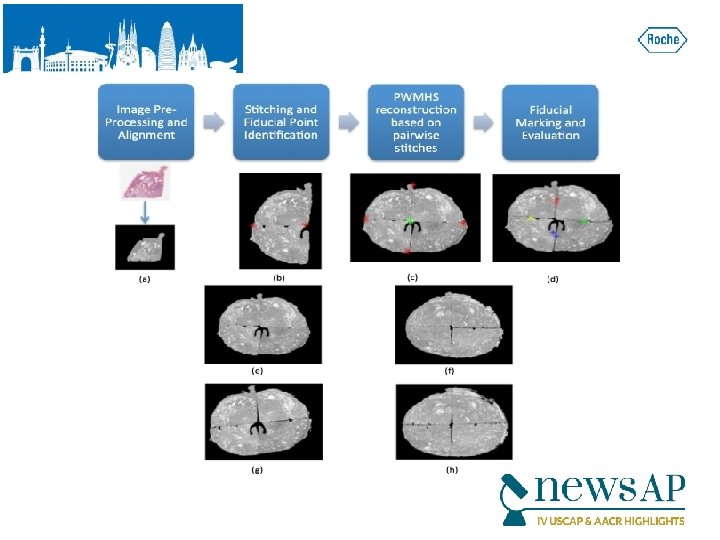 Background: We recently presented a memory efficient, flexible tool called Histo. Sticher. TM for manual reassembly of image fragments. However, this technique still requires laboriously manually identifying matching locations ("fiducials") prior to reconstruction. We present preliminary results of an automated method of reconstructing PWMHSs (pseudo whole-mount histological sections) from tissue fragment images, thus removing a major impediment to pathology-radiology correlation research.