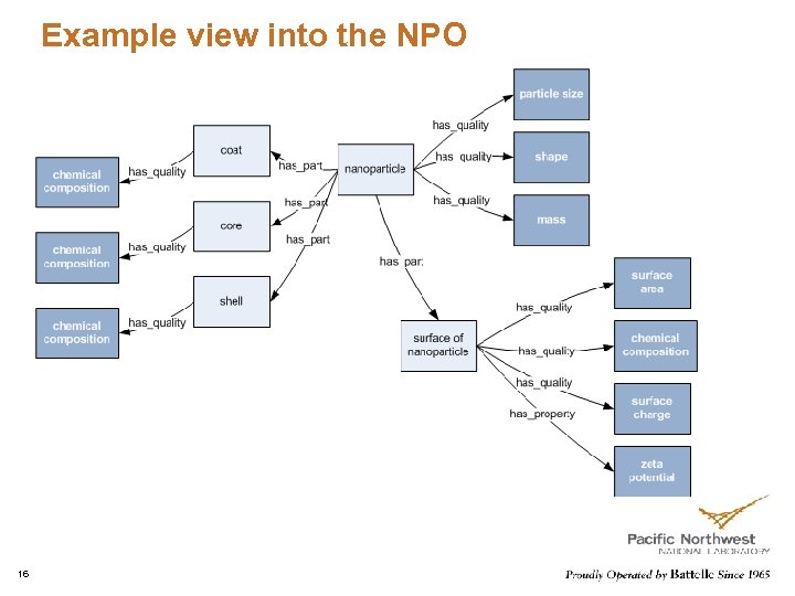 Nano. Particle Ontology (NPO) Capture knowledge underlying nanomaterial Preparation Chemical composition Physiochemical characterization Biological function/behavior Basic Formal Ontology structure Initial focus on cancer diagnosis and therapy Current growth to include a broader range of nanotechnology concepts Supported by the ca. BIG® Nano WG Available through Bioportal 15 http: //purl. bioontology. org/ontology/NPO http: //www. nano-ontology. org/ Thomas DG, Pappu RV, Baker NA. Nano. Particle Ontology for Cancer Nanotechnology Research. J Biomed Inform, in press. doi: 10. 1016/j. jbi. 2010. 03. 001