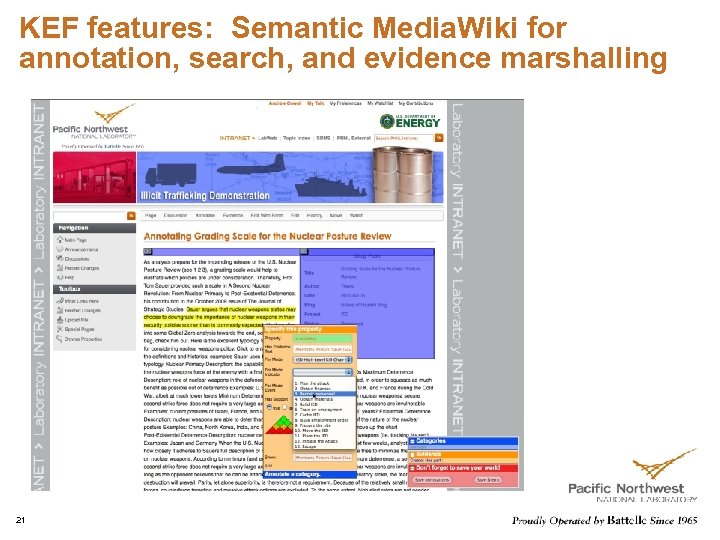 KEF features: Semantic Media. Wiki for annotation, search, and evidence marshalling 21