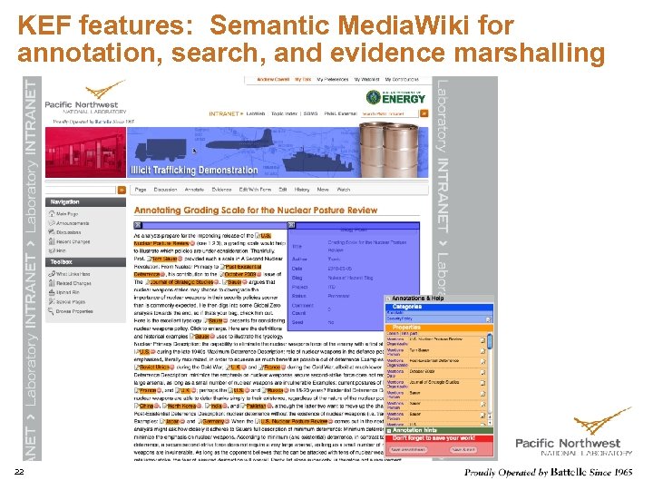 KEF features: Semantic Media. Wiki for annotation, search, and evidence marshalling 22