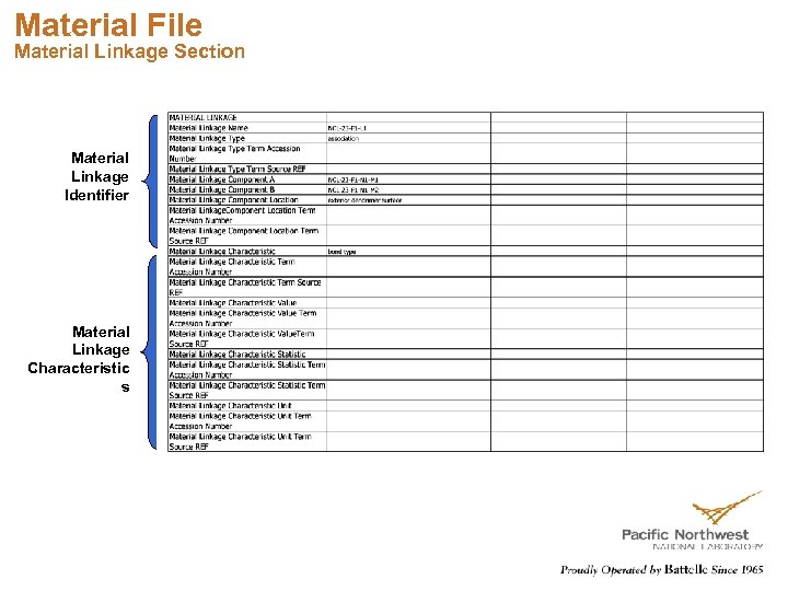 Material File Material Linkage Section Material Linkage Identifier Material Linkage Characteristic s