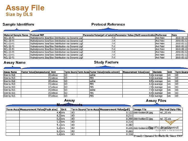 Assay File Size by DLS Protocol Reference Sample Identifiers Study Factors Assay Name Assay Measurements Assay Files