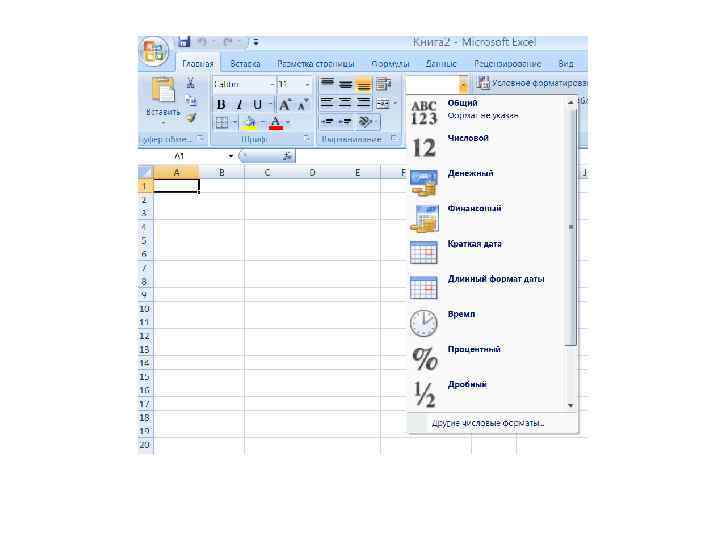 MS Excel 2007 Microsoft Excel позволяет: Ø Решать математические задачи: выполнять разнообразные табличные вычисления, вычислять значения функций, строить графики и диаграммы и т. п. ; Ø Осуществлять численное исследование (Что будет, если? Как сделать, чтобы? ); Ø Проводить статистический анализ; Ø Реализовать функции базы данных – ввод, поиск, сортировку, фильтрацию (отбор) и анализ данных; Ø Устанавливать защиту на отдельные фрагменты таблицы, делать их невидимыми; Ø Наглядно представлять данные в виде диаграмм и графиков; Ø Вводить и редактировать тексты; Ø Осуществлять обмен данными с другими программами, например, вставлять текст, рисунки, таблицы, подготовленные в других приложениях; Ø Осуществлять многотабличные связи.
