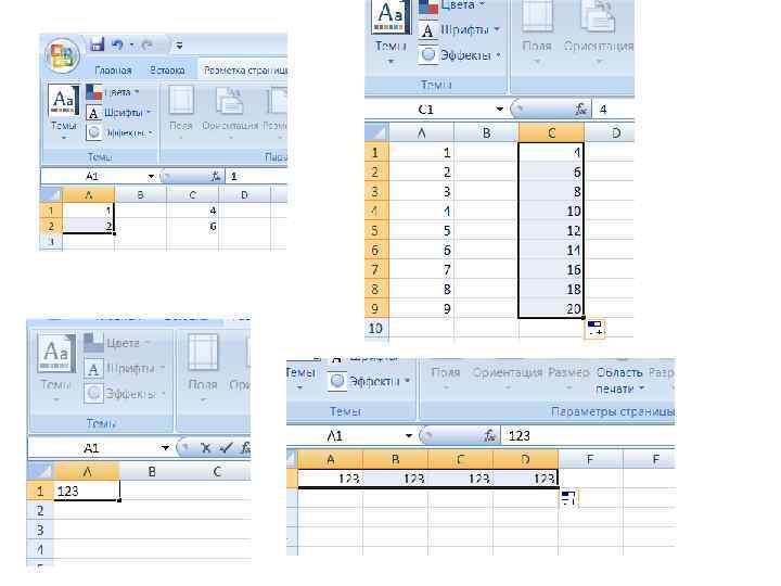 Использование автозаполнения Автозаполнение можно использовать для ввода в смежные ячейки одного столбца или одной строки последовательных рядов календарных данных (даты, дни недели, месяцы), времени, чисел, комбинаций текста и чисел. Кроме того, можно создать собственный список автозаполнения. 1. В первую из заполняемых ячеек введите начальное значение ряда. 2. Выделите ячейку. 3. Наведите указатель мыши на маркер автозаполнения (маленький черный квадрат в правом нижнем углу выделенной ячейки). Указатель мыши при наведении на маркер принимает вид черного креста. 4. При нажатой левой кнопке мыши перетащите маркер автозаполнения в сторону изменения значений. При перетаскивании вправо или вниз значения будут увеличиваться , при перетаскивании влево или вверх – уменьшаться.