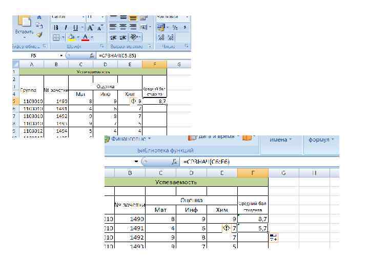 Создание формул с использованием мастера функций • Функция – стандартная формула, которая обеспечивает выполнение определенных действий над значениями, выступающими в качестве аргументов. Функции позволяют упростить формулы, особенно если они длинные или сложные. Функции используют не только для непосредственных вычислений, но также и для преобразования чисел, например для округления, для поиска значений, сравнения и т. д. • Для создания формул с функциями обычно используют группу Библиотека функций вкладки Формулы.