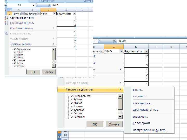 Работа с данными в Excel