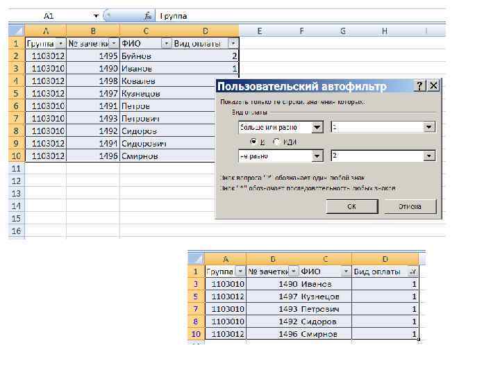 Расширенный фильтр 1 шаг – задание условий