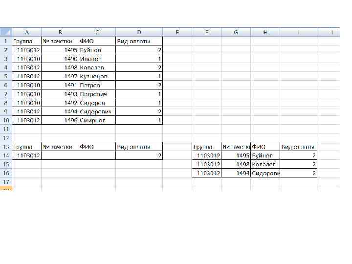 Пример сортировки (номер группы → вид оплаты)