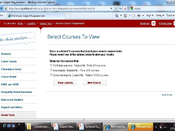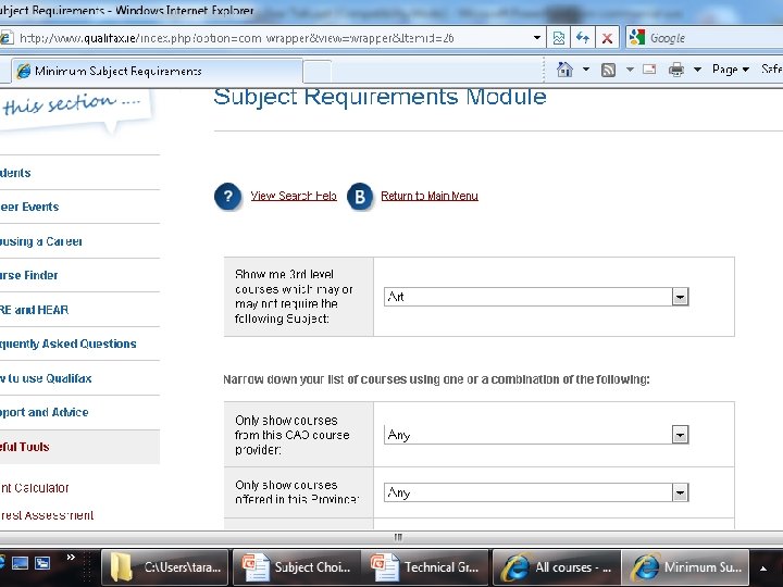 RESEARCH Subject Websites: www. scoilnet. ie www. education. ie www. skoool. ie Career Websites: www. qualifax. ie www. careersportal. ie www. careerdirections. ie Junior Certificate course books.