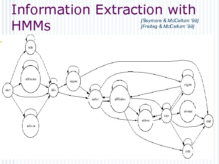 Information Extraction with HMMs [Seymore & Mc. Callum ‘ 99] [Freitag & Mc. Callum ‘ 99]