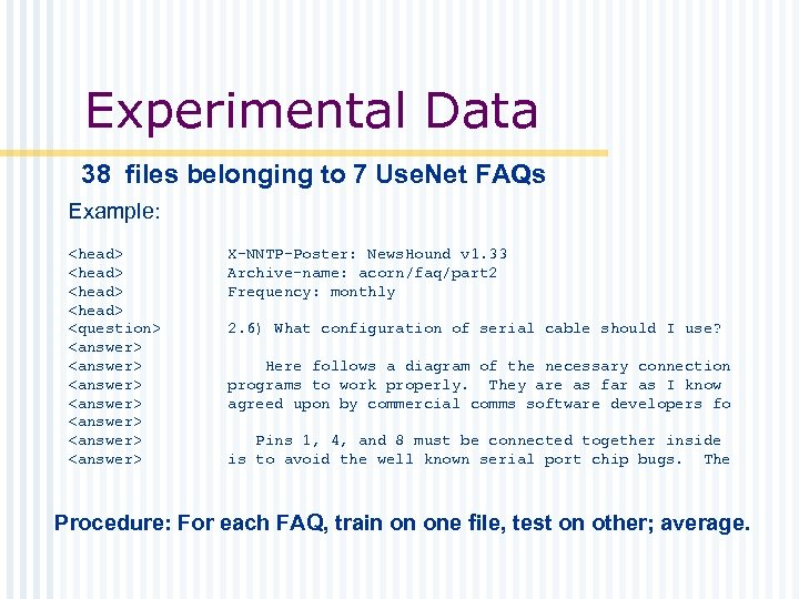 Experimental Data 38 files belonging to 7 Use. Net FAQs Example: