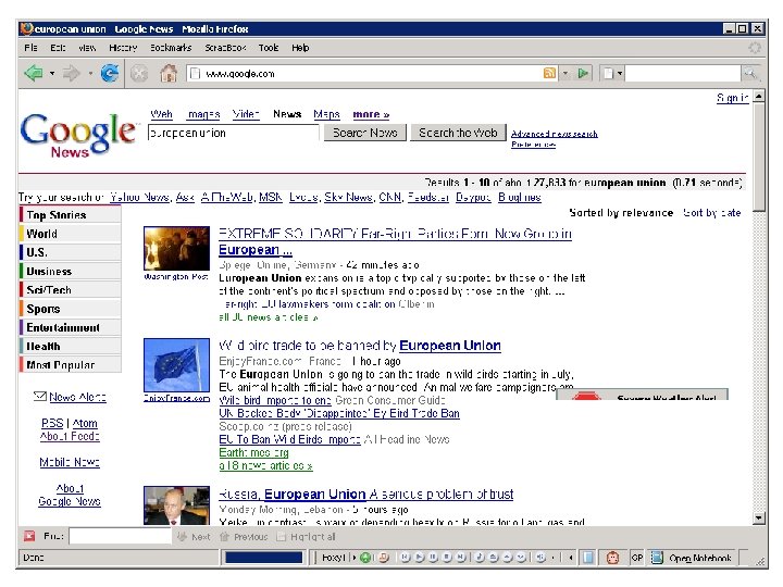 Fun things to do with search engines • Googlewhack • Reduce document set size to 1 • Find query that will bring given URL in the top 10