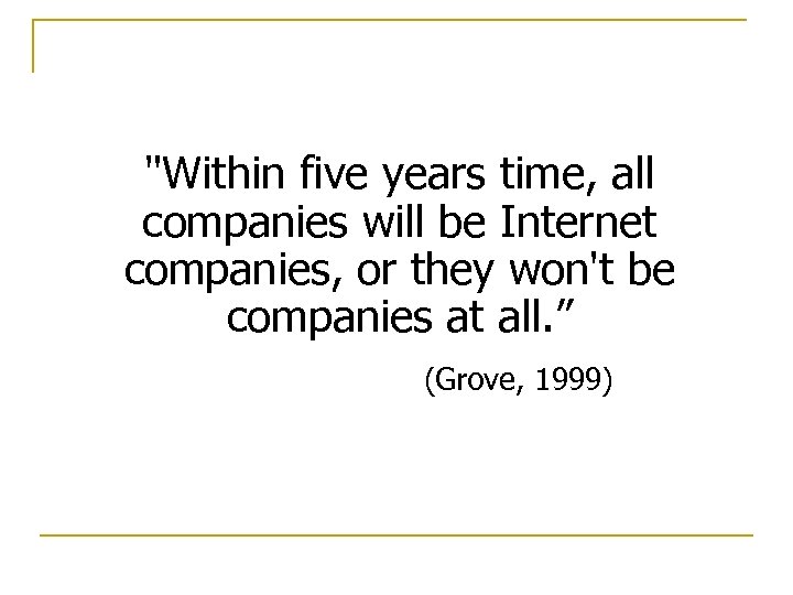 "Within five years time, all companies will be Internet companies, or they won't be companies at all. ” (Grove, 1999)