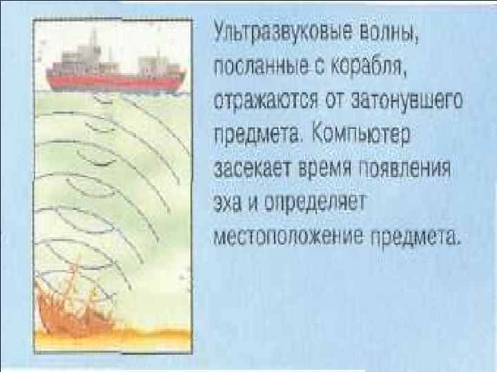 Метод определения расстояния до объектов под водой при помощи ультразвуковых сигналов называется гидролокацией. На дне судна помещают излучатель и приемник ультразвука. Излучатель посылает ко дну короткие ультразвуковые сигналы. Время отправления каждого сигнала регистрируется прибором. Отражаясь от морского дна, сигнал через некоторое время достигает приемника. Момент приёма сигнала тоже регистрируется. Таким образом, за время, которое проходит с момента отправления сигнала до момента его приёма, сигнал проходит путь, равный удвоенной глубине моря.