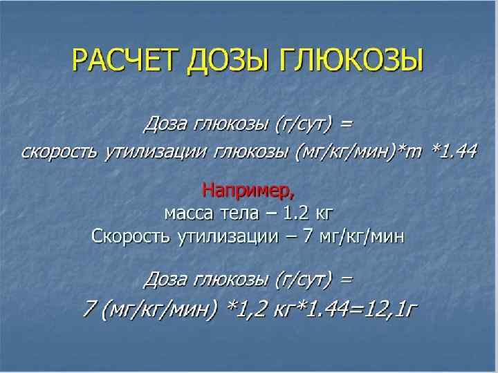 Расчет инфузии глюкозы. • Эндогенно глюкоза вырабатывается 8 мг/кг/мин у доношенных и 6 мг/кг/мин у недоношенных. • Возможность окисления глюкозы максимально 12 мг/кг/мин (18 мг/кг/сут) у доношенных и 7 мг/кг/мин у недоношенных в первые 2 недели жизни после рождения и 5 мг/кг/мин сразу после рождения и у критически больных детей. • Neo. Reviews-2011 -Vol 12, N 3