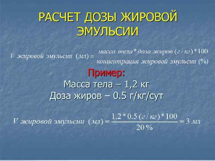 В соответствии с Европейским консенсусом по лечению новорожденных с РДС 2013 г, рекомендовано введение белка новорожденным с первых часов жизни с прогрессивным увеличением дозы до 4 г/кг/сут, а жиров – до 2, 5 -3, 0 г/кг/сут. Количество глюкозы – 6 -18 г/кг/сут.