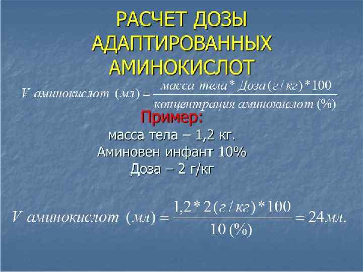 РЕКОМЕНДАЦИИ (недоношенные) • Применение аминокислот должно начинаться с первого дня жизни • Минимальная доза для профилактики отрицательного азотистого баланса составляет 1. 5 г/кг/сут. Для накопления белка требуются более высокие дозы • Максимальная доза составляет 4 -4, 5 ( для детей с весом < 750 г) г/кг/сут Journal of Pediatric Gastroenterology and Nutrition 41: S 5–S 11 November 2005 ESPGHAN.