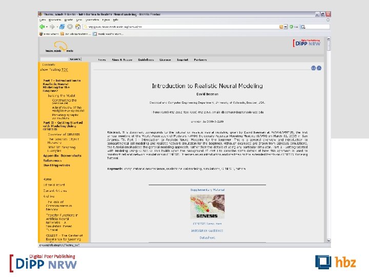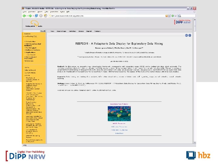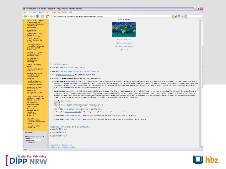 Initiative „Digital Peer Publishing“ initiated by the Ministry of Research of the German state North-Rhine Westphalia operator: hbz - public service provider for academic libraries proximate goal: Support Start-ups & Pick-ups of e. Journals ultimate goal: Fostering innovative forms of web-based, scholarly communication