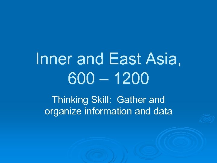 Inner and East Asia, 600 – 1200 Thinking Skill: Gather and organize information and data