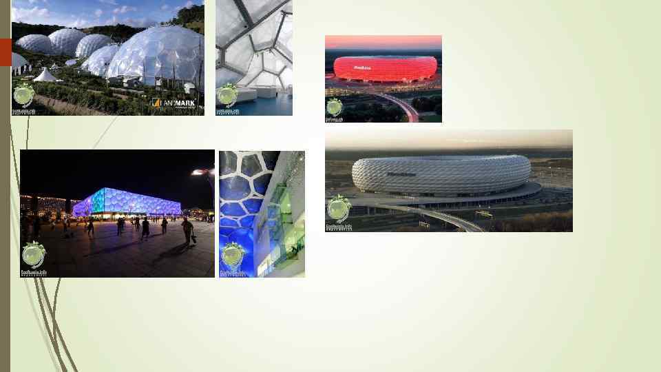 Пленки из термопластичных фторполимеров Фторполимеры известны своими свойствами, которые реализуются в пленочных материалах: широкий интервал эксплуатации–от минус 200 до плюс 250 о. С, химстойкость, высокие диэлектрические характеристики, антиадгезионные и антифрикционные свойства, атмосферостойкость и негорючесть. Экструзионные фторполимерные пленки прозрачны, коэффициент светопропускания в видимой части спектра до 90 -97%. Пленки выпускаются на специализированных экструзионных агрегатах практически из всех видов термопластичных фторполимеров (ТПФП). Основными изготовителями экструзионных пленок являются ведущие фирмы по производству фторполимеров: Du Pont (США) – Teflon FEP Film, Teflon PFA Film; Daikin (Япония) – Neoflon NF; Asahi Glass (Япония) – Fluon ETFE Film. Фирмы, специализирующиеся на выпуске пленок из покупного ТПФП: Nowofol Kunststoffproducte Gmb. H (Германия) – Nowoflon FEP, PFA, THV, PVDF; Saint Gobain Performance Plastics (США) – Norton FEP, ETFE, ECTFE. ETFE (Ethylene tetrafluoroethylene) — это аналог полимера тетрафторэтилена (PTFE, polytetrafluoroethylene), точнее говоря, его сополимер с этиленом. Оба они относятся к группе соединений с общим названием фторопласты. ETFE называют синтетической фольгой, хотя на самом деле это разновидность пластмассы. Свойства и сферы применения: -Плёнку ETFE используют вместо архитектурного стекла, потому что она вдвое дешевле и намного легче. -Она имеет прекрасные термоизоляционные свойства и пропускает гораздо больше ультрафиолета, чем обычное стекло, что особенно важно при создании оранжерей или зимних садов. -Плёнка обладает повышенной эластичностью и устойчивостью к сильным температурным перепадам. -ETFE плёнка представляет собой самоочищающийся материал; его очень удобно применять при создании стеклянных крыш и атриумов.