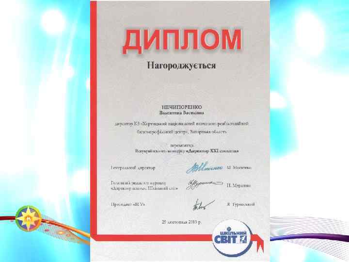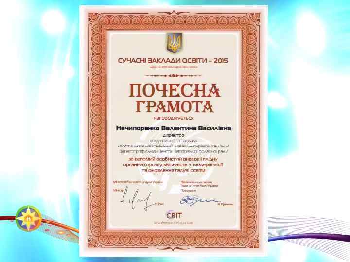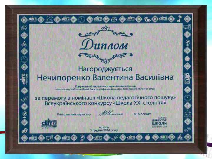 Інноваційний розвиток Хортицького національного навчально-реабілітаційного багатопрофільного центру як відкритої соціально-освітньої системи Нечипоренко В. В. , директор Хортицького національного навчально-реабілітаційного багатопрофільного центру, доктор педагогічних наук, доцент, Заслужений вчитель України