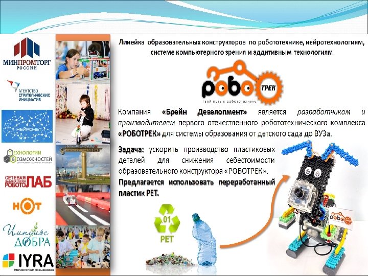 Для успешного решения этих проектов реализуем НИОКР ООО «Институт полимеров» Тема: «Разработка композиционных полимерных смесей на основе вторичных полиэтилентерафталата, полибутилентерафталата, поликарбоната, полистирола, конструкторской документации термопластавтомата и пресс-формы для их переработки в техническое изделие с заданными свойствами» ( на примере проекта облицовочной «Плитки» ) Есть много перспективных направлений использования вторичного ПЭТ, ПБТ и др. , например для литья компьютерных и автомобильных деталей. Материалы имеют высокую стойкость к растворителям, автомобильному топливу, смазкам, тормозным жидкостям, бытовым чистящим средствам. Это позволяет использовать материал в автомобильной промышленности (шестерни, подшипники) , производство утюгов и деталей стиральных машин.