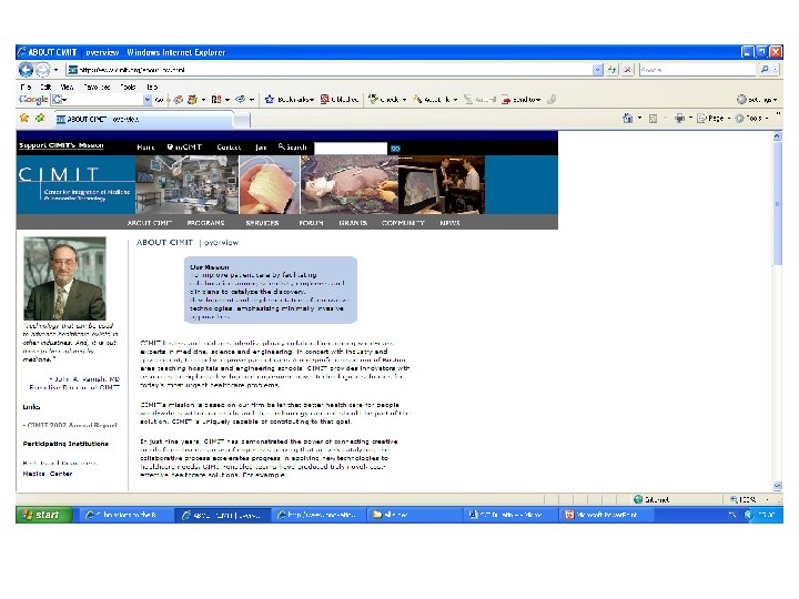 Australian Innovation review Bio 21 Cluster argues for: • ‘an innovative entity based on the highly successful Centre for Integration of Medicine and Innovative Technology (CIMIT, www. cimit. org) in Boston, USA. CIMIT’s mission is to improve patient care by bringing scientists, engineers and clinicians together to catalyse development of innovative technology. They are interested in developing international affiliations and have recently worked with the North West of the UK to establish MIMIT in Manchester’