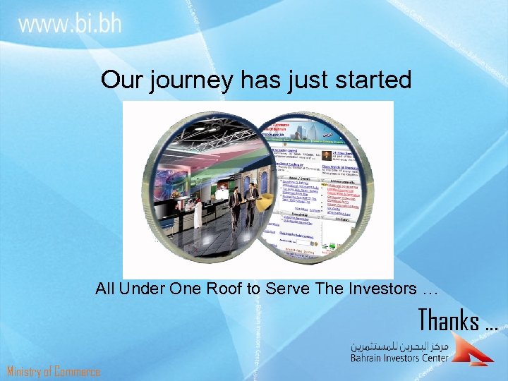Our journey has just started All Under One Roof to Serve The Investors … Thanks … Ministry of Commerce
