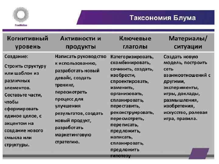Таксономия Блума • Таксономия учебных целей • Уровни: – Запоминание – Понимание – Применение – Анализ – Оценка – Создание • Мыслительные операции низшего порядка • Мыслительные операции высшего порядка