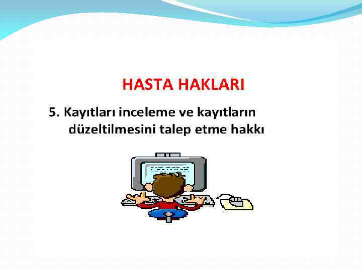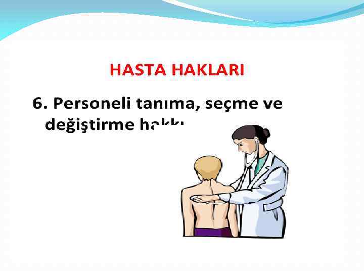5) Tedavisi İle İlgili Önerilere Uyma Sorumluluğu • Hasta; tedavisi ve ilaçlarla ilgili tavsiyeleri dikkatle dinlemeli ve anlayamadığı yerleri sormalıdır.