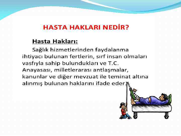 HASTA HAKLARI İnsan Haklarının Sağlık Alanına Yansımasıdır.