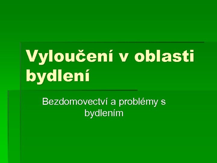 Vyloučení v oblasti bydlení Bezdomovectví a problémy s bydlením