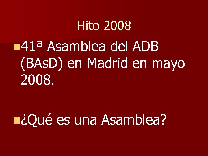 Hito 2008 n 41ª Asamblea del ADB (BAs. D) en Madrid en mayo 2008. n¿Qué es una Asamblea?