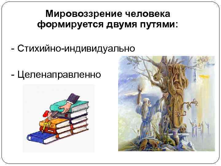 Мировоззрение человека формируется двумя путями: - Стихийно-индивидуально - Целенаправленно