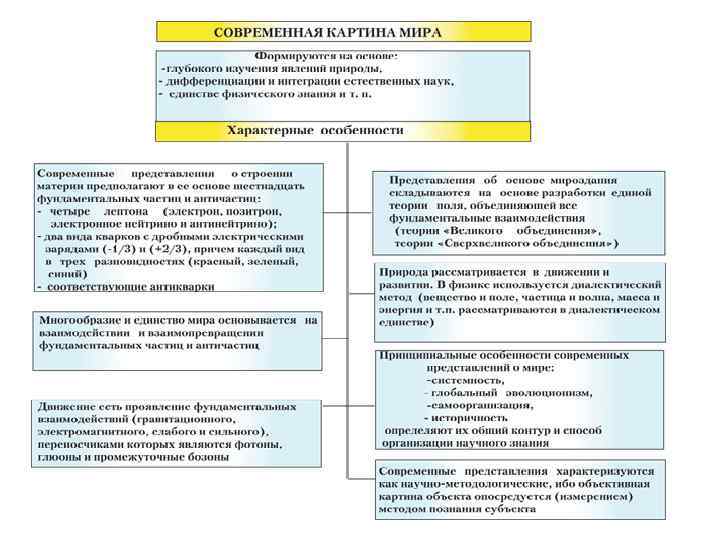СОВРЕМЕННАЯ КАРТИНА МИРА Формируются на основе: • - глубокого изучения явлений природы, • - дифференциации и интеграции естественных наук, • - единстве физического знания и т. п.