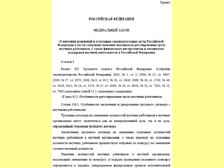 ФЕДЕРАЛЬНЫЙ ЗАКОН О внесении изменений в отдельные законодательные акты Российской Федерации в части совершенствования механизмов регулирования труда научных работников, а также финансовых инструментов и механизмов поддержки научной деятельности в Российской Федерации