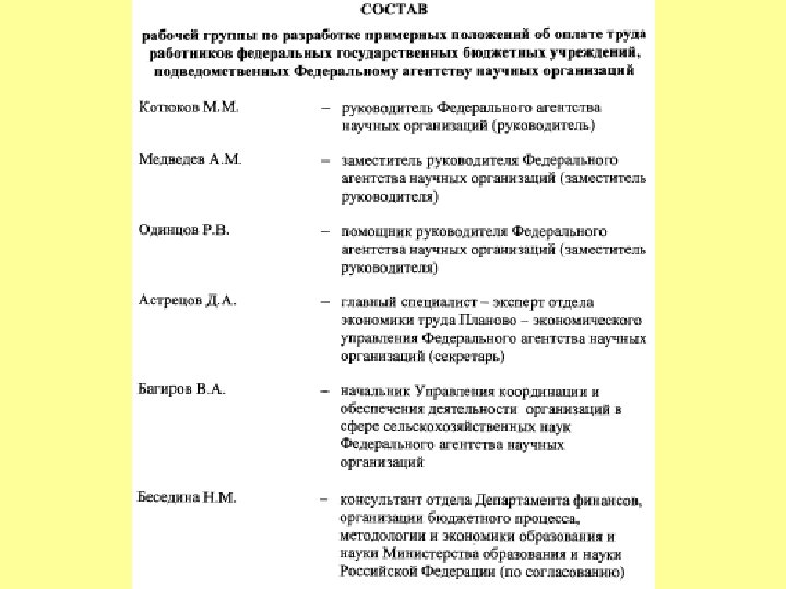 О рабочей группе по разработке примерных положений об оплате труда